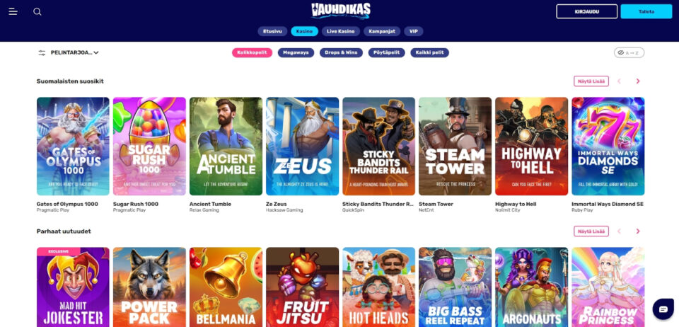 Vauhdikas sopii pelaajille, jotka arvostavat nopeutta ja yksinkertaisuutta. Bonusehdot ovat tiukat, mutta pelaamista voi nauttia myös ilman bonusta keskittyen verovapaiden voittojen tavoitteluun.
